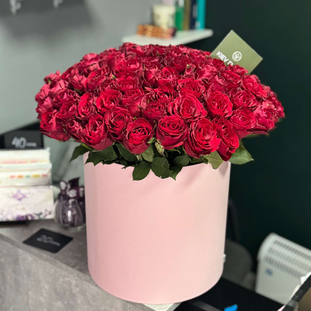 Замовити букет із 101 червоної троянди з доставкою по Києву – легко та зручно. Команда KievFlora ретельно відбирає кожну квітку, забезпечуючи свіжість і бездоганну гармонію композиції.