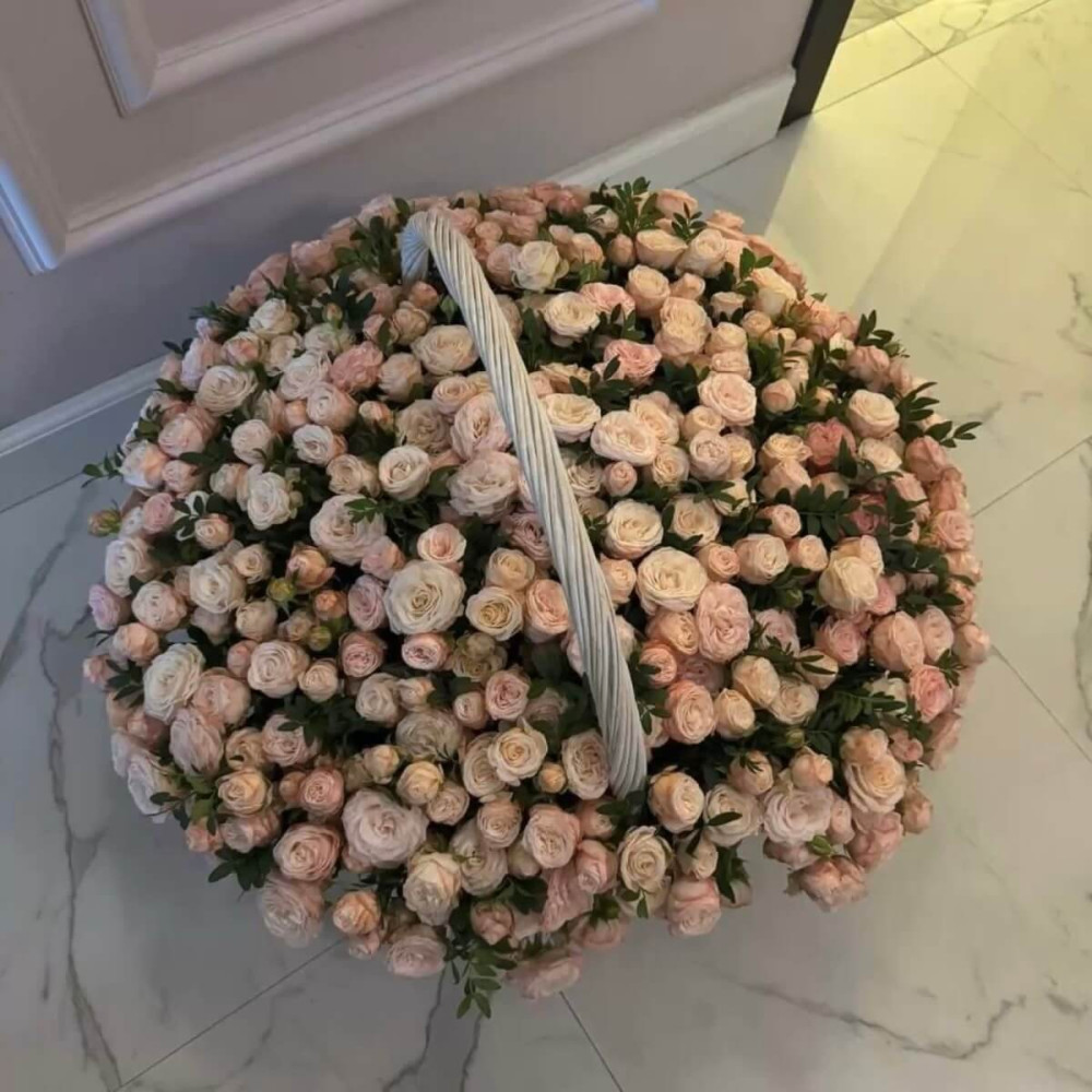 Купити 101 півоноподібну кремову троянду в кошику з безкоштовною доставкою по Києву. Замовляй квіти на нашому сайті – ідеальний подарунок для особливих моментів