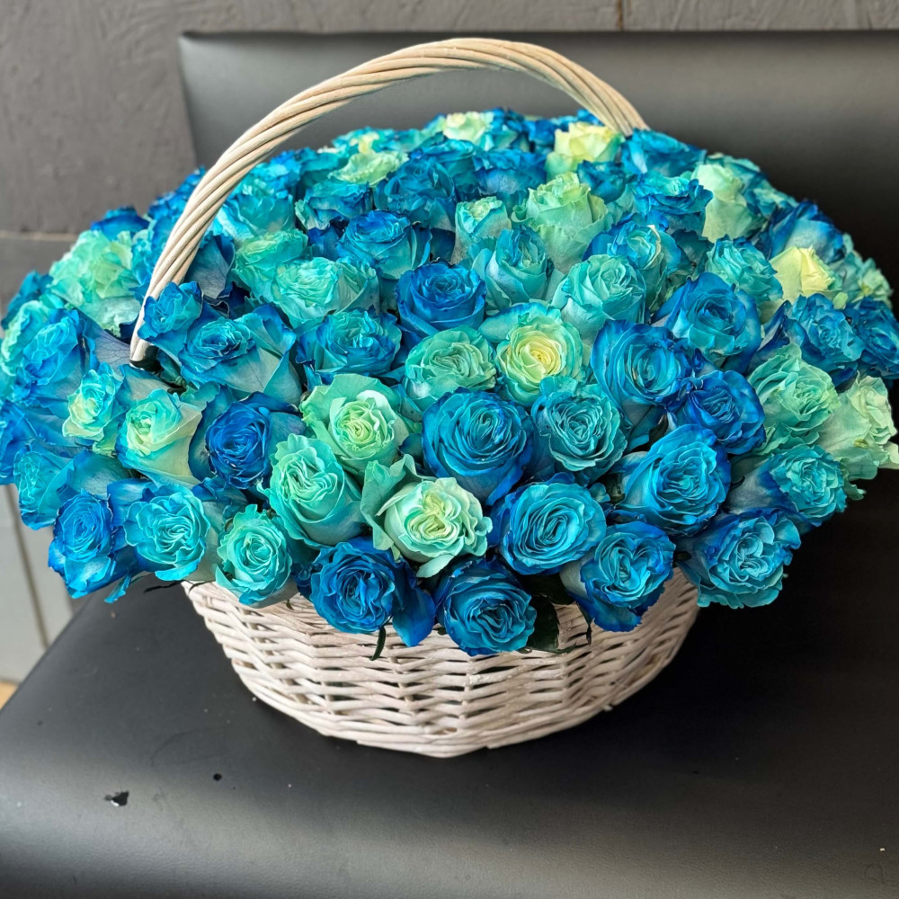 101 синя троянда в кошику – це витончена та незвичайна композиція, яка вражає глибоким синьо-фіолетовим відтінком і ніжною формою бутонів. Кожна троянда символізує таємничість, благородство та елегантність, створюючи неповторний подарунок для ювілею, романтичного жесту або особливого свята.