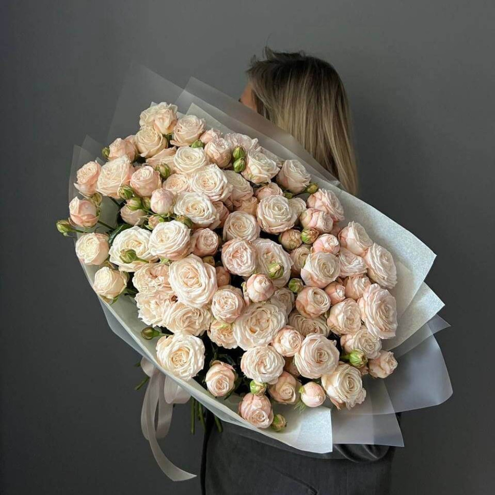Кущові троянди Принцеса Бомбастік - це тренд у світів квітів, а саме цей букет - топ продажів у цьому році ! Завдяки великій кількості дрібних бутонів на кожній гілці букет виглядає дуже пишно та ефектно.