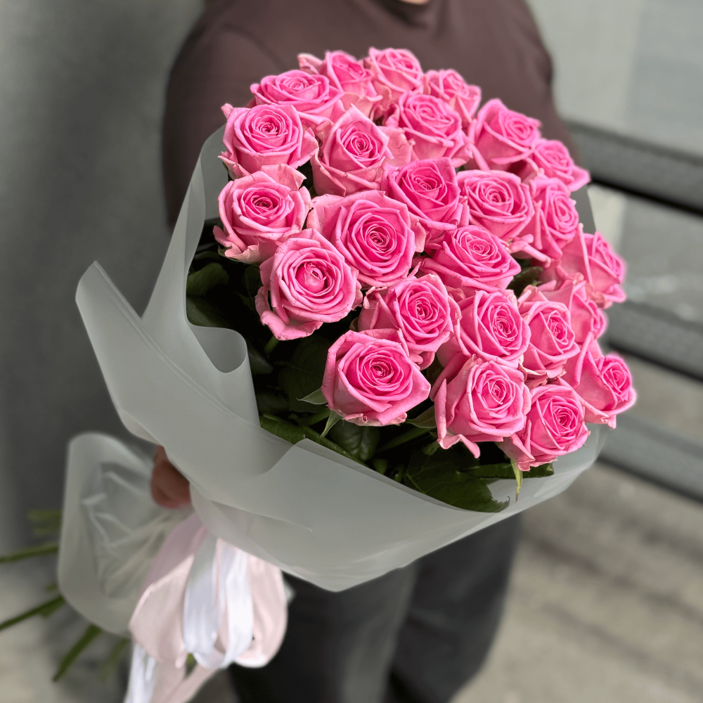 Купити букет із 25 рожевих троянд з доставкою по Києву. Замовляй квіти онлайн – і нехай кожен момент буде наповнений ніжністю та любов’ю.