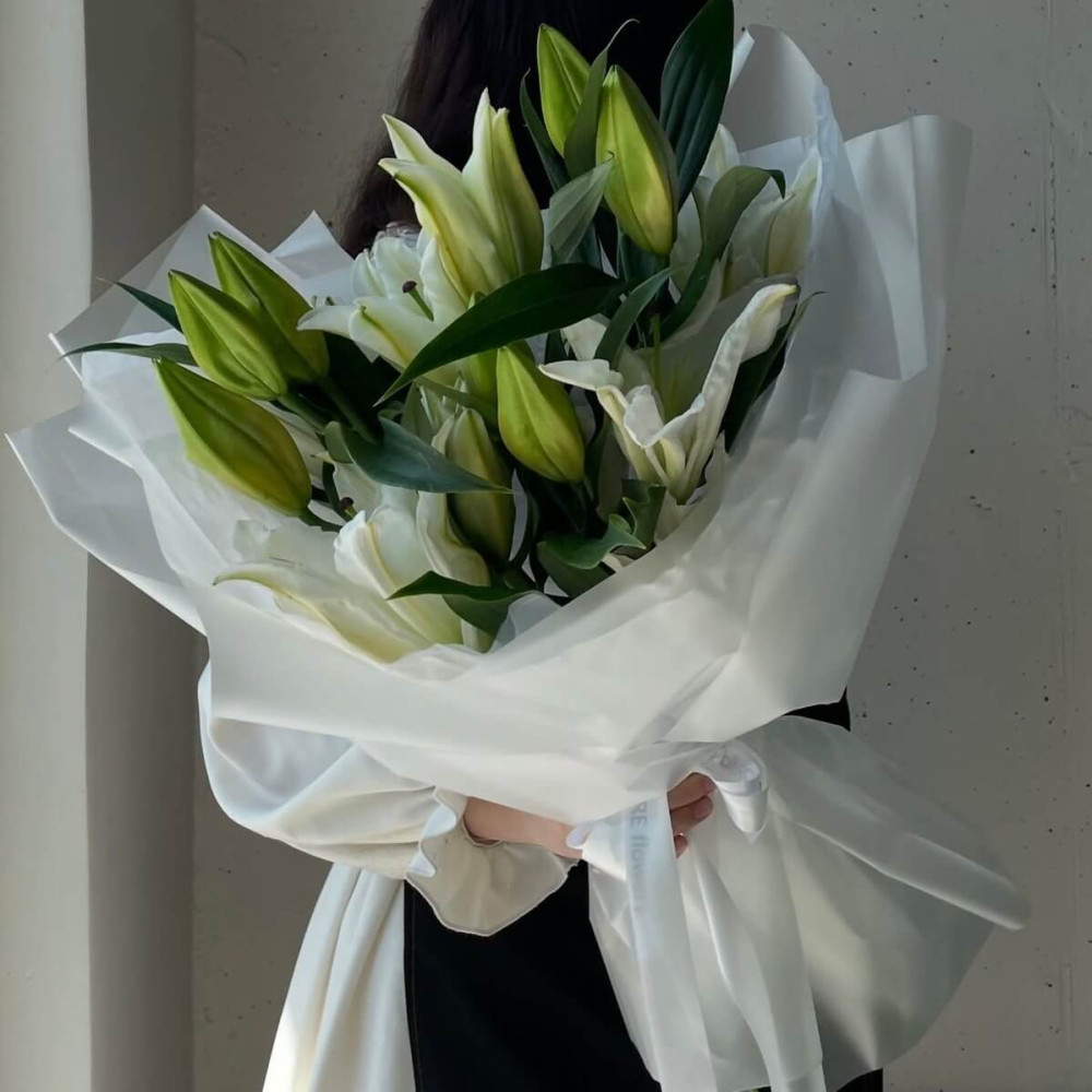 Тоді саме час купити букет із 5 гілочок білих лілій у Києві з доставкою. Легко замовити онлайн – ми гарантуємо свіжість кожної квітки та безкоштовну доставку по Києву.
