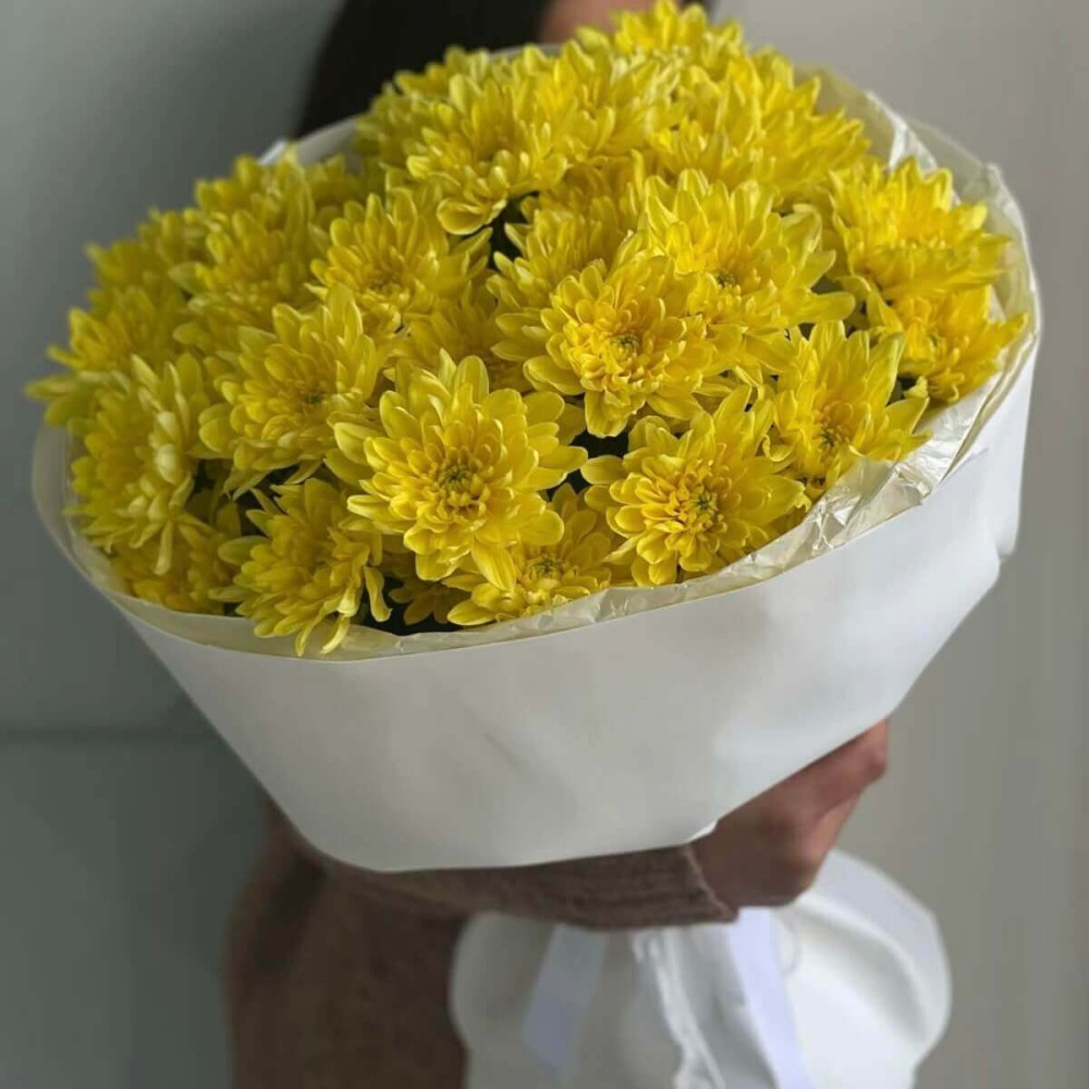 It is easy to buy flowers, chrysanthemums and stylish bouquets on our website: choose a bouquet of yellow chrysanthemums and give smiles.
